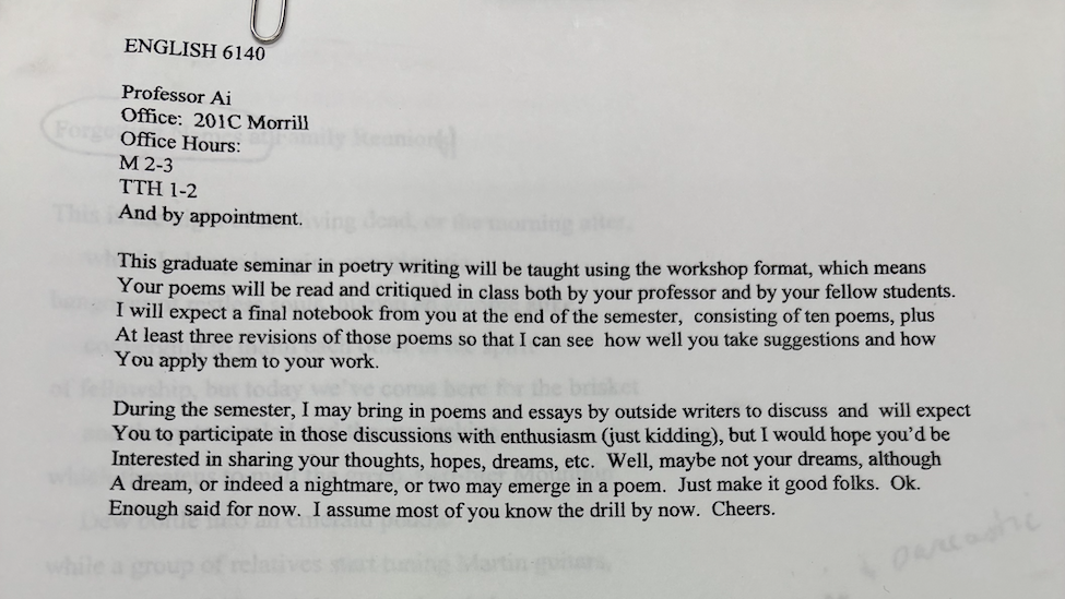 Ai Ogawa, graduate poetry workshop syllabus, undated,