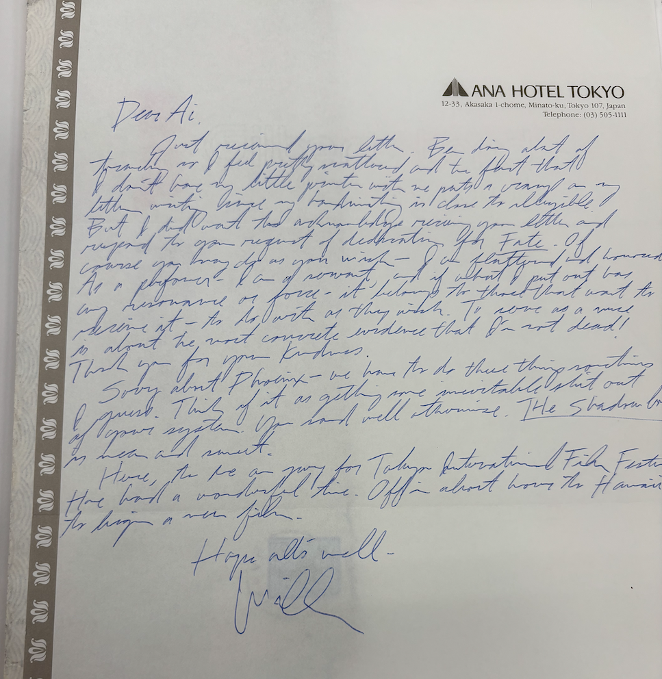 Willem Dafoe, letter to Ai Ogawa, undated,