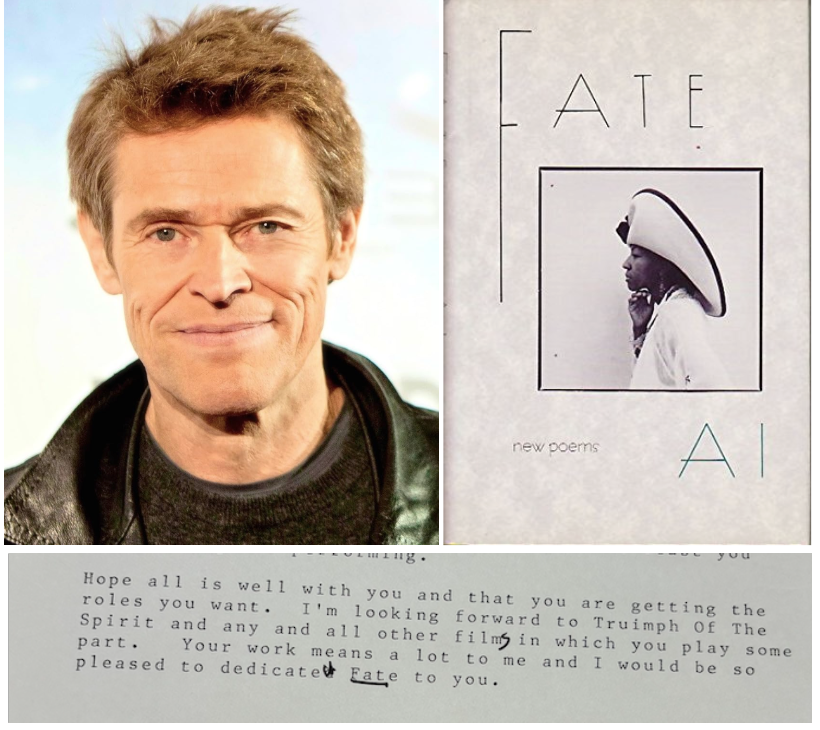 Ai dedicated her book Fate to Willem Dafoe. Yes, that Willem Dafoe.